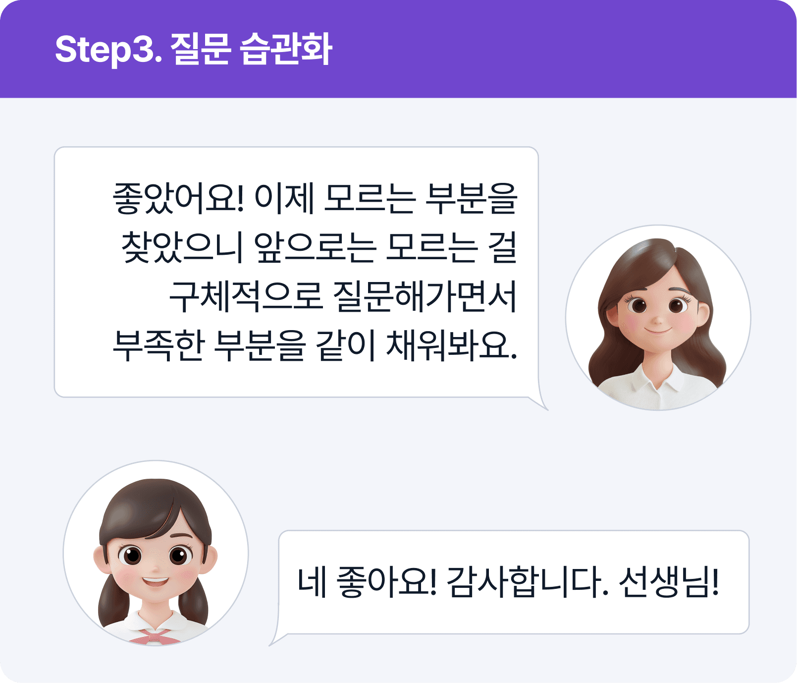 구분할 수 있게 질문을 이끌어내는 것 부터 시작합니다.