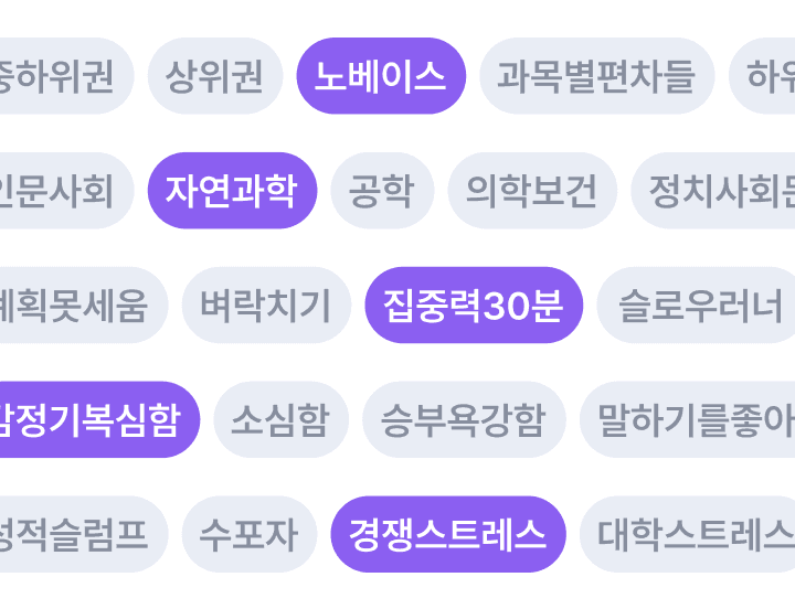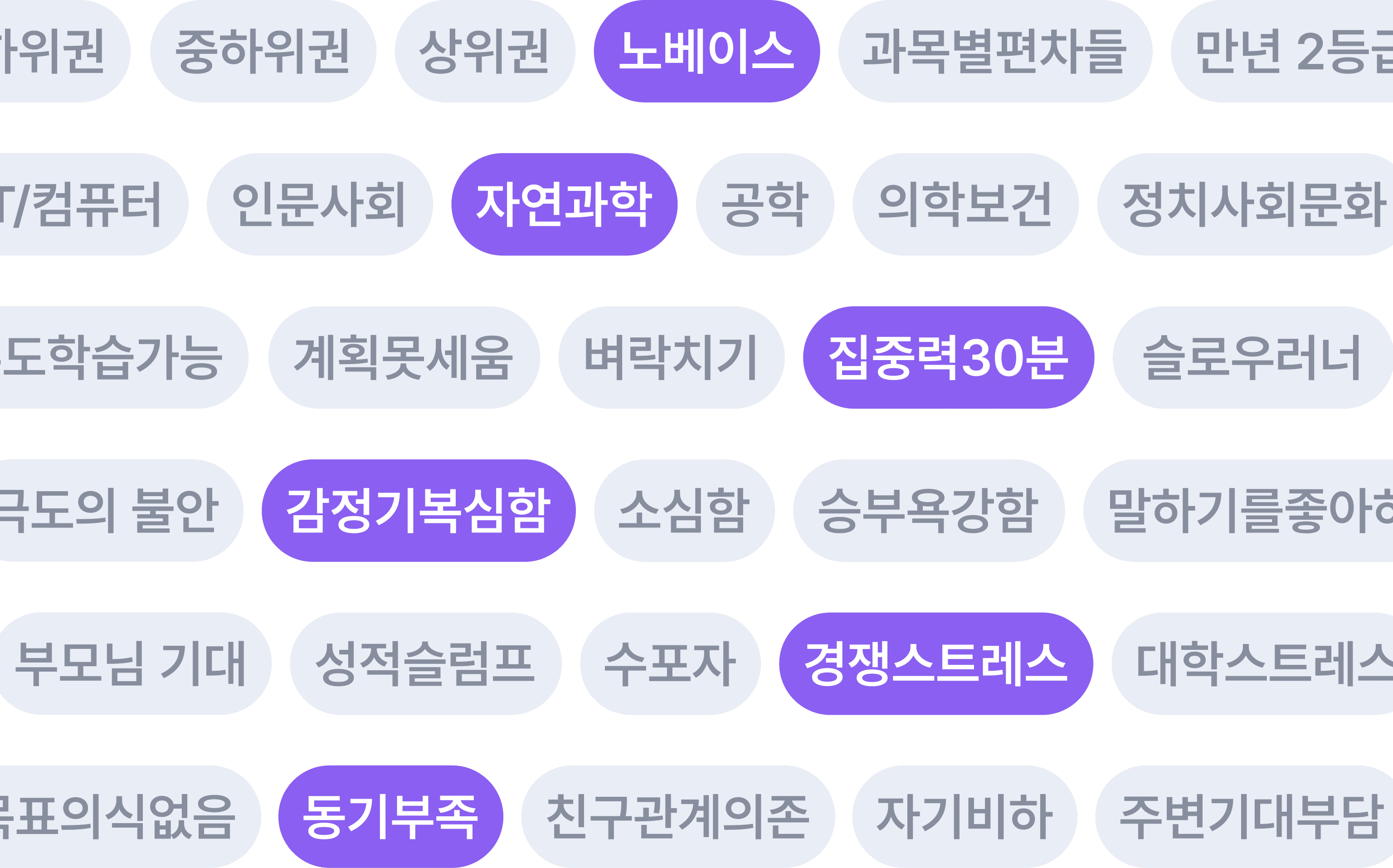 학습 고민부터 목표 학과, 원하는 선생님 스타일 등을 선택해요
