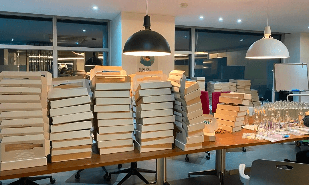작은 일에도 마음에 상처를 입거나 신경이 쓰일 수 있는 시기인 만큼 ‘우리 수험생들에게 절대 파손된 유리병이 도착해서는 안 된다’는 마음으로 ‘견고성’을 최우선에 두고 작업했어요. 배송 시에 깨지는 일 없이 단단하게 고정될 수 있도록 이중으로 지기 구조를 만들기도 했죠.