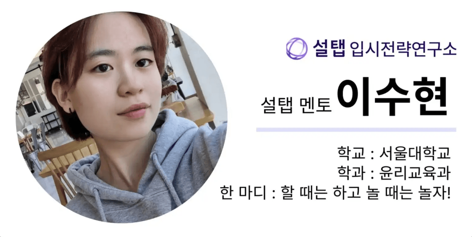 ‘SKY 비밀 공부법’ 코너에서는 설탭 입시전략연구소에서 멘토로 활동하는 SKY 선생님들의 공부 노하우를 전해드립니다. 수능, 내신, 수시 노하우와 시간관리 비법, 학원 선택법, 방학 효율적으로 보내는 노하우 등 앞서 입시를 경험한 선배 멘토들의 경험을 담은 생생한 팁을 확인할 수 있습니다. 더 많은 아티클은 네이버 카페 설탭 입시전략연구소(https://cafe.naver.com/seoltablab)에서 확인해 주세요.
