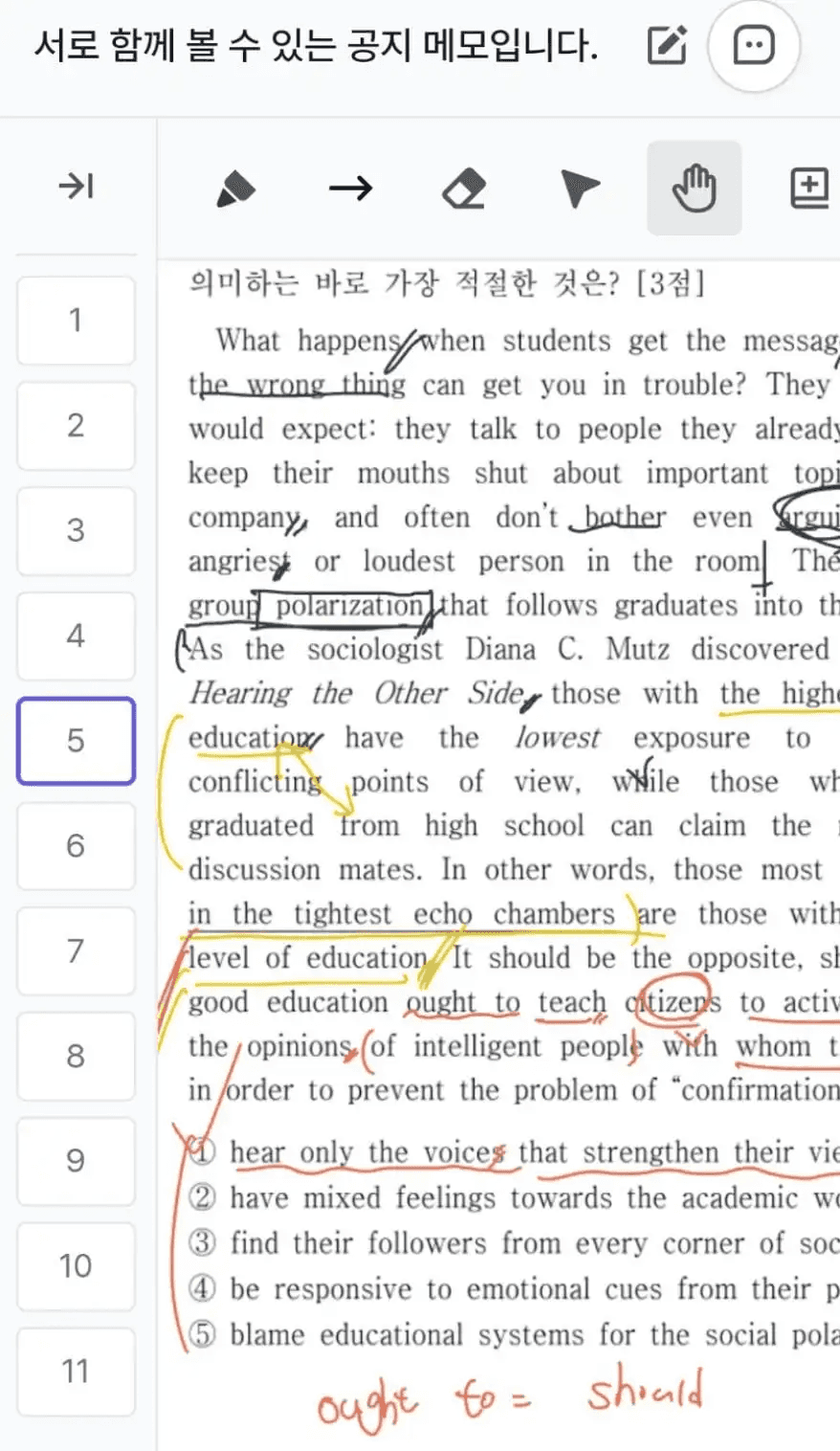 그리고 시간이 부족해서 마지막 문제를 못 풀고 찍는 경우가 있었는데 시간 조절하는 방법, 지문을 빨리 푸는 법 등 노하우를 알려주시더라고요. 또 일단 수능 시험을 보신 분이라 주변 경험담이나 본인의 경험담 등을 여러 번 들려주셨습니다.