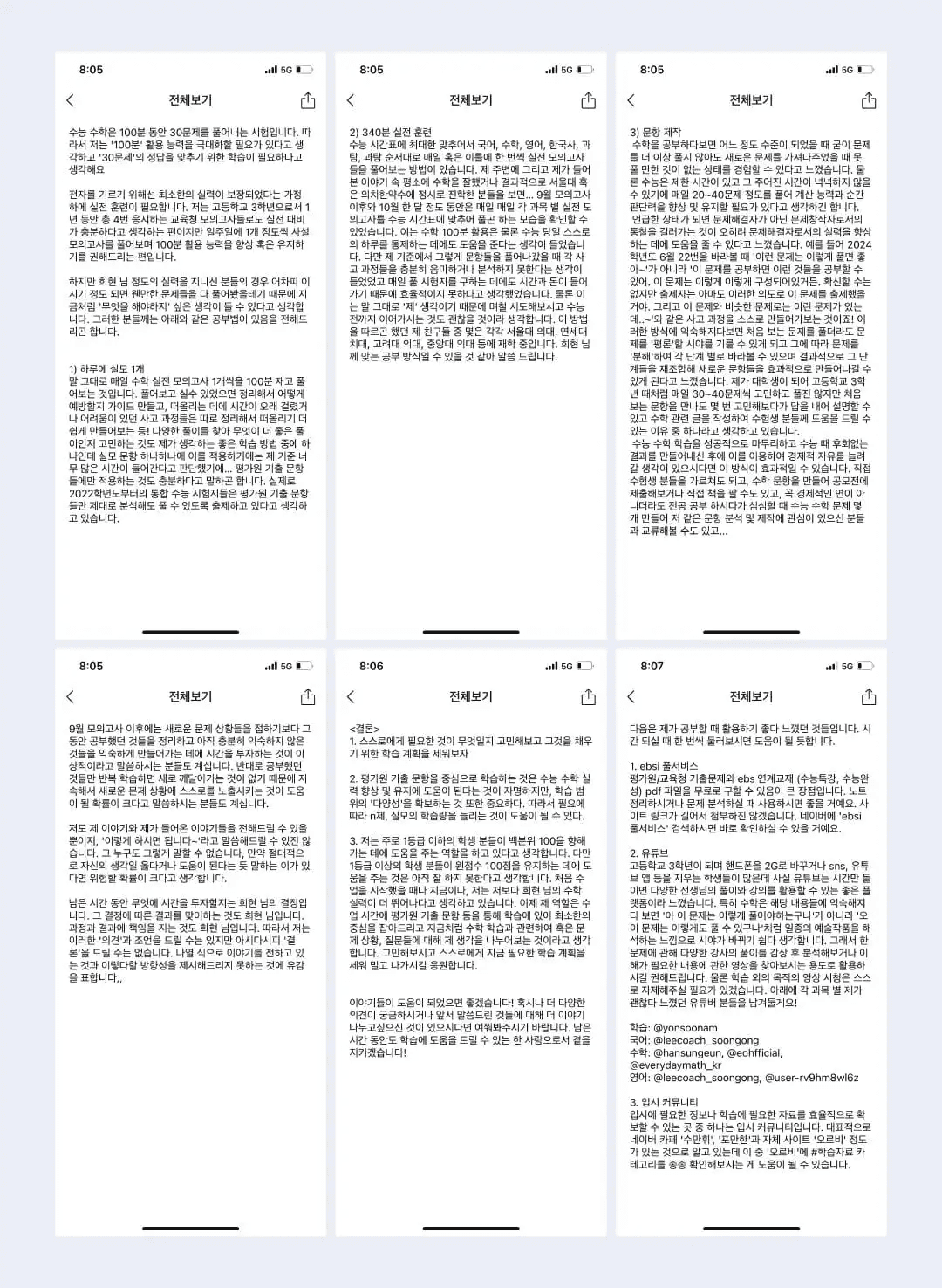 Q. 쌤 덕분에 처음으로 하고 싶은 공부와 목표가 생긴 거네요. 그런데 처음엔 수학 노베이스라 모의고사 6~7등급이었다고 들었어요. 수학 1등급으로 성적을 올리기 위해 아주 혹독한 시간을 보냈다면서요?
