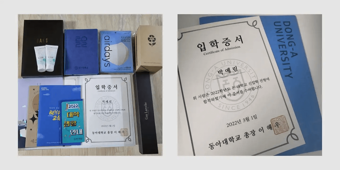부족했던 과목을 설탭으로 공부를 하면서 생명과학은 점수가 점점 오르기 시작했고, 가장 중요했던 수학 역시 어느 시점이 되니 중간 난이도까지는 수월하게 잘 풀렸어요. 그리고 결국 2022 수능에서 국어 2등급, 수학 1등급, 영어 2등급, 생명과학 1 1등급, 화학 1 3등급을 받고 최저를 맞추는 데 성공하여 마침내 동아대학교 의과대학에 합격했죠.