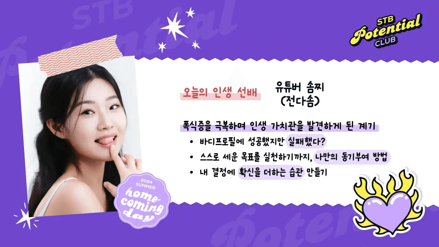 세 번째 인생 선배는 폭식증을 극복하며 인생 가치관을 발견한 유튜버 전다솜(솜찌)님 입니다.