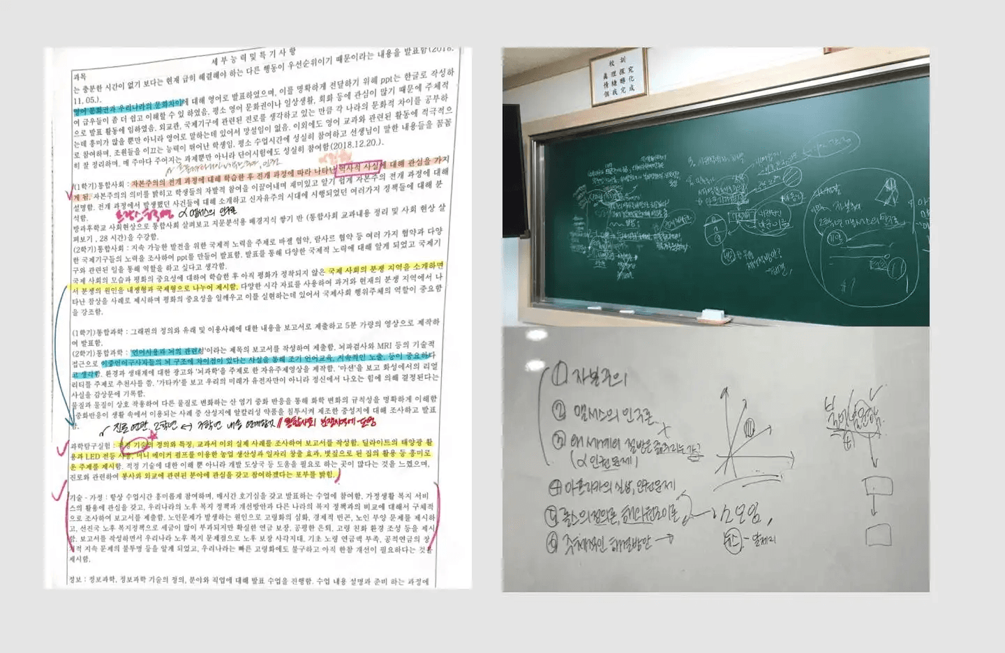 칠판에 자신의 생기부를 구상하며 스스로 고민해 온 흔적들
