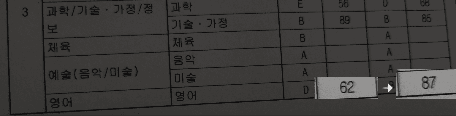 수업 한 달 만에 영어 25점 상승!