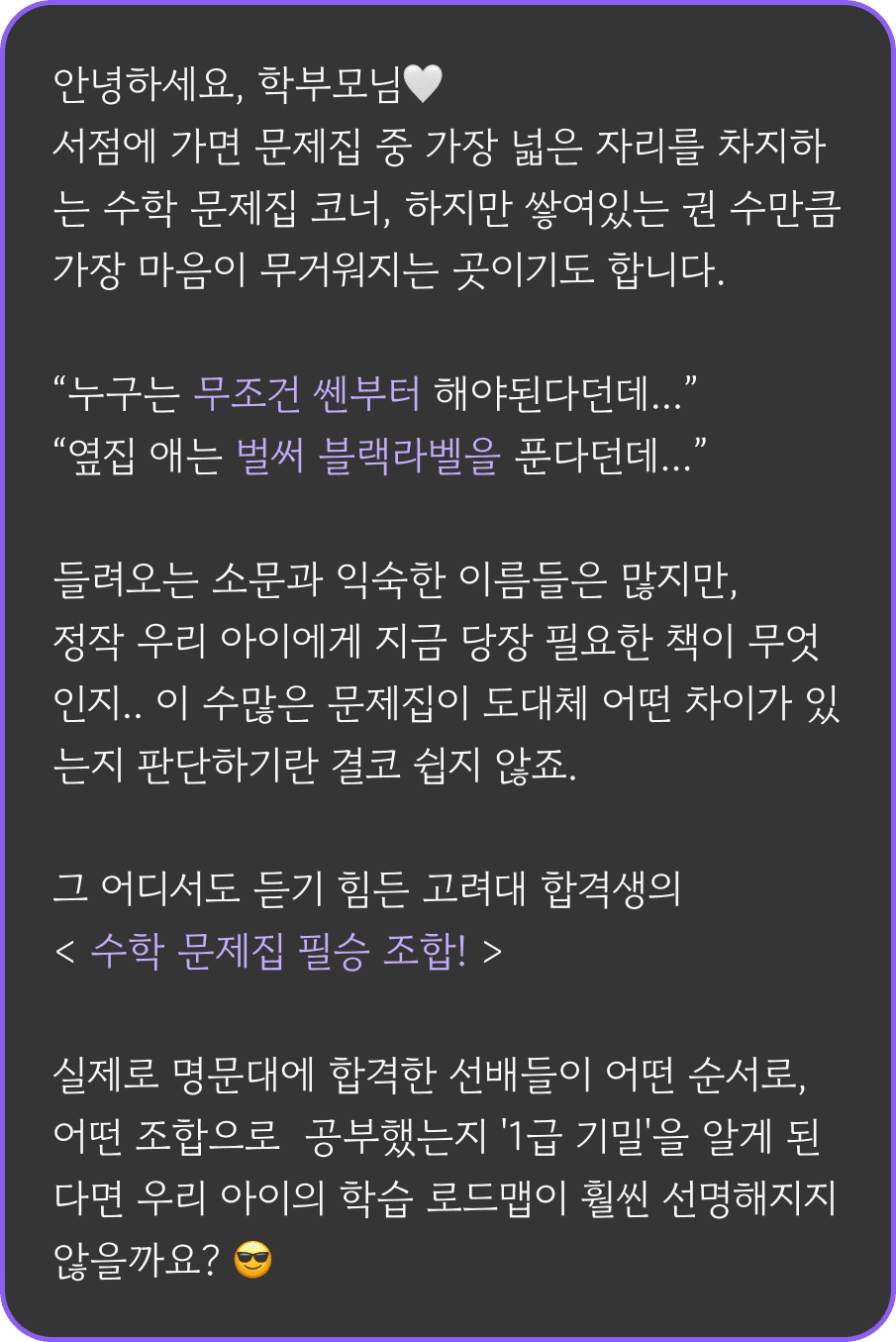“문제집 쇼핑 그만!” 고려대 합격한 < 수학 문제집 필승 조합 >