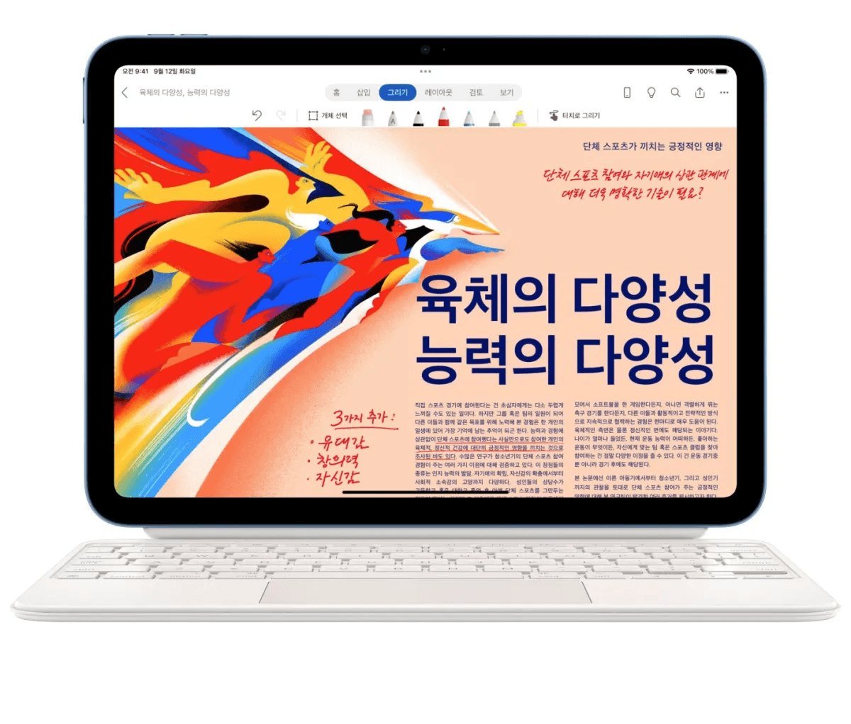 필기앱 활용: 애플펜슬, S펜을 활용하여 필기할 수 있고, 필기앱에 정리해 다양한 자료를 한 번에 관리할 수 있습니다.