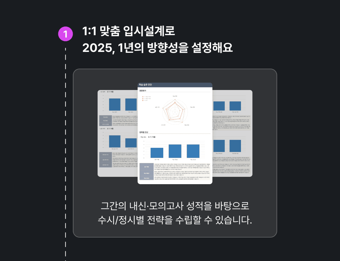 예를 들어, 수학에서 기본기가 부족한 학생에게는 핵심 개념을 우선적으로 학습하도록 커리큘럼을 설계하고, 모의고사 성적 향상이 필요한 학생에게는 기출문제를 기반으로 한 심화 학습과 문제풀이 전략을 제공하죠. 이처럼 설탭의 1:1 맞춤형 진단은 아이가 필요한 부분에 집중해 효율적으로 학습할 수 있도록 도와줘요.
