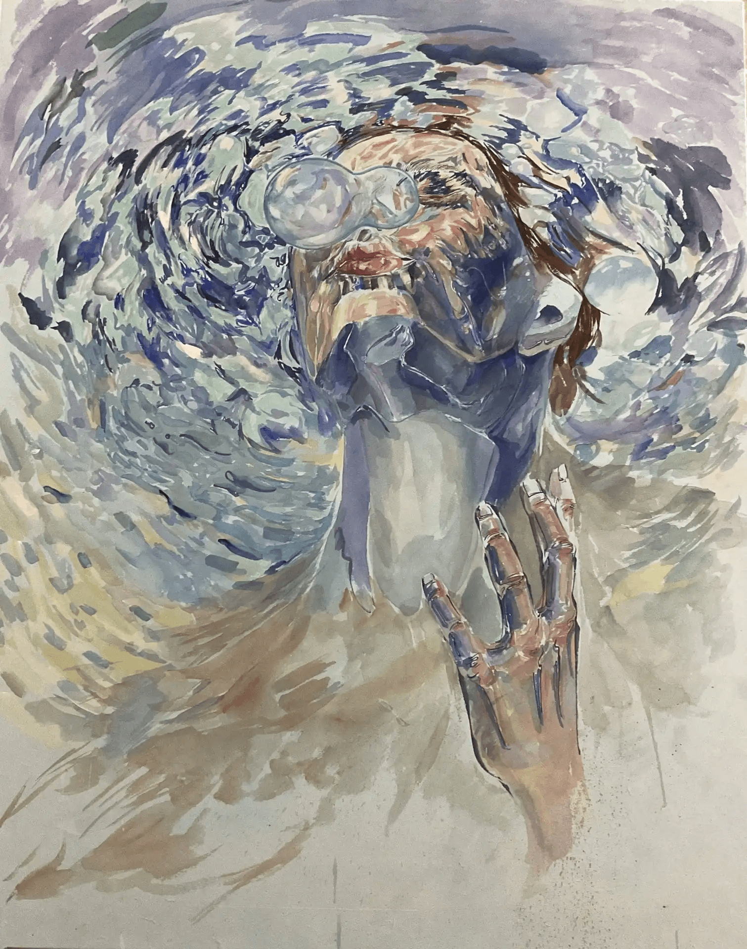 현우의 작품(2024/ 90.9*72.2/ 장지에 이채, 분채/ 잠수)