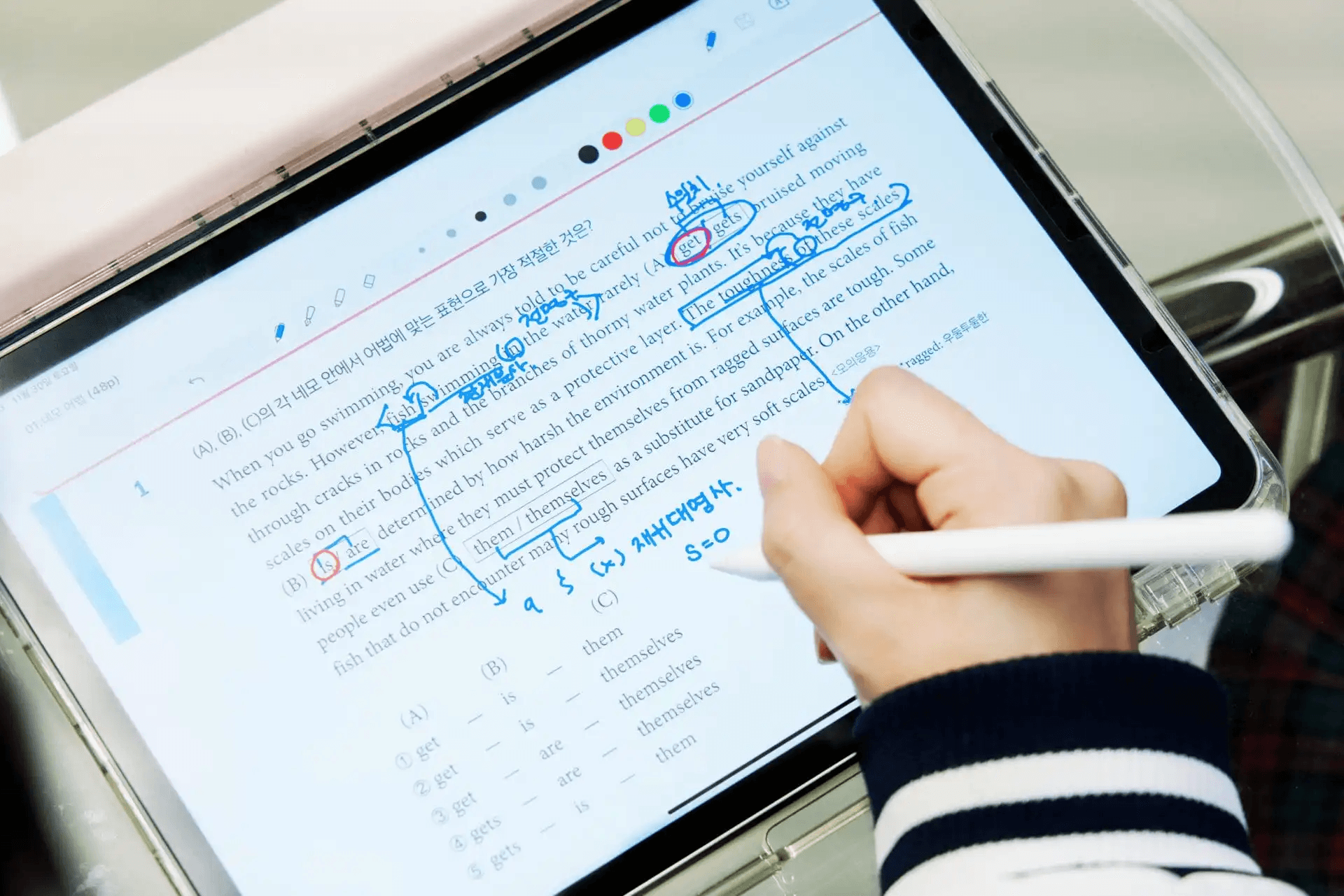 지윤 쌤 | “예를 들어 수 일치를 묻는 문제의 경우, 슬래쉬(/) 앞뒤에 있는 단어의 형태 차이를 먼저 분석한 뒤 출제자가 무엇을 묻고자 하는지 파악하는 연습을 했어요. 그다음 지문 속에서 수 일치 문제를 풀기 위해 필요한 힌트를 찾아 정확한 근거로 정답을 도출할 수 있게 하고요.”