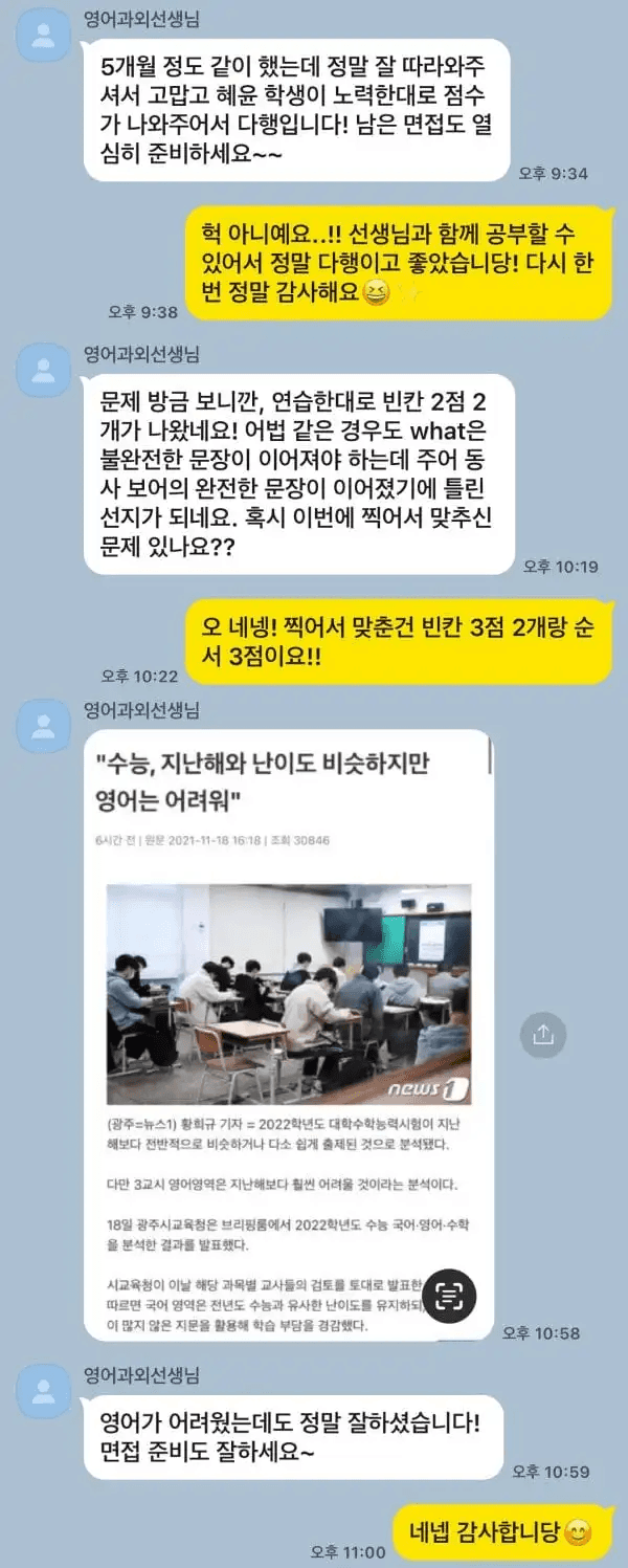 하지만 설탭 선생님은 혜윤 학생에게 ‘영어는 절대 평가고 너의 경우 수능에서 최저만 넘으면 되니, 맞출 수 있는 문제만 실수 없이 잘 맞추면 된다’며