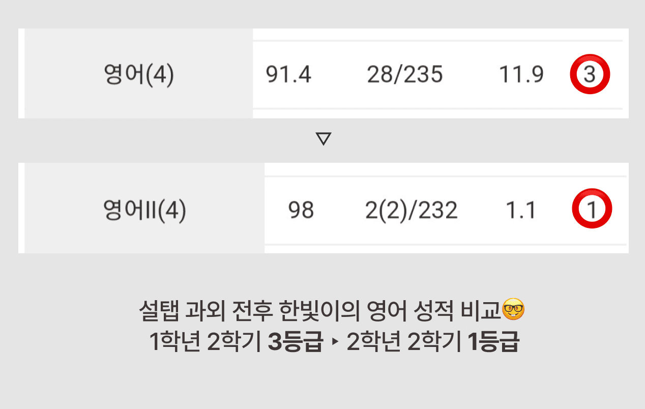 그리하여 영어 성적은 어떤 변화가 있었을까요?
