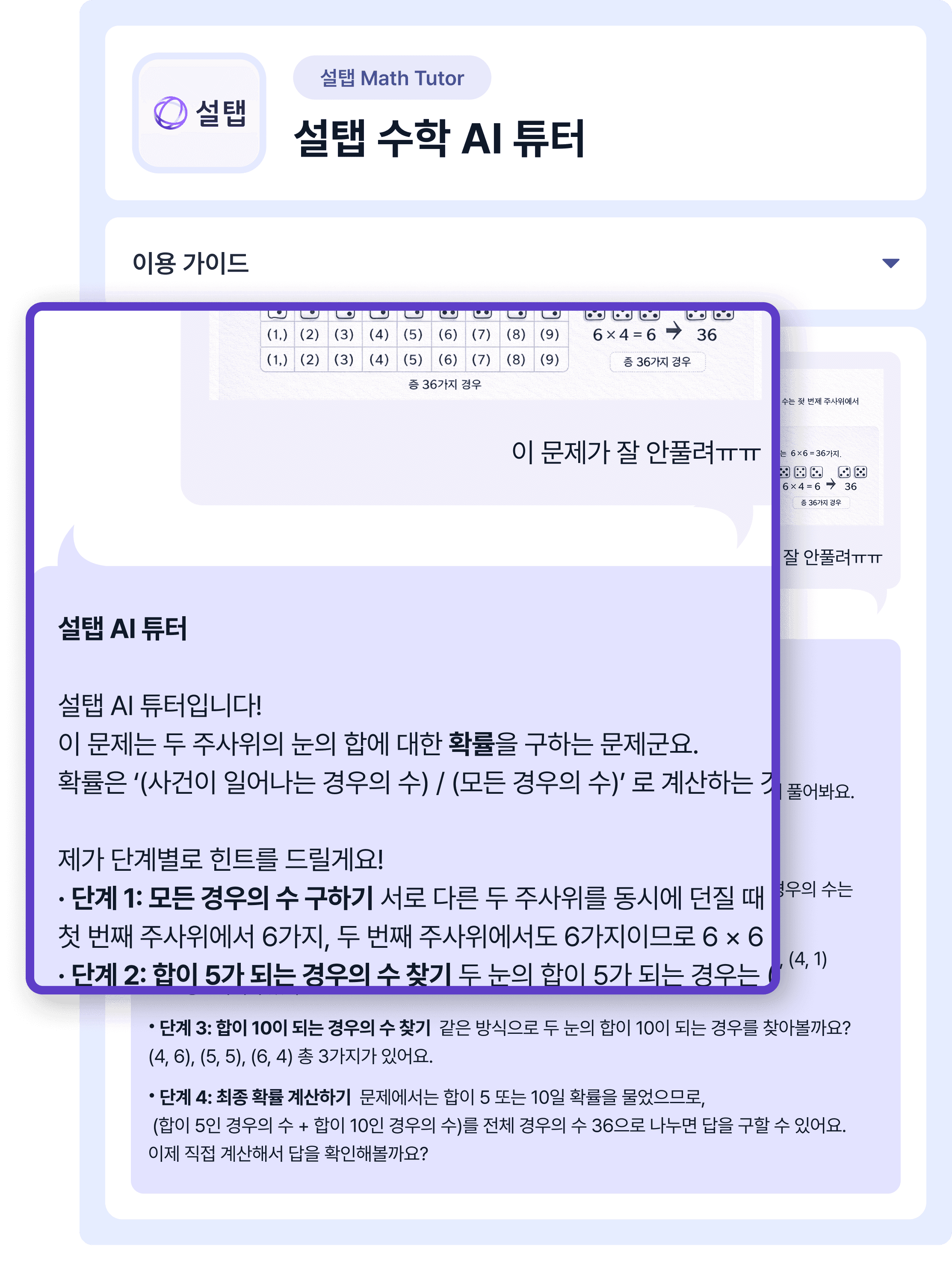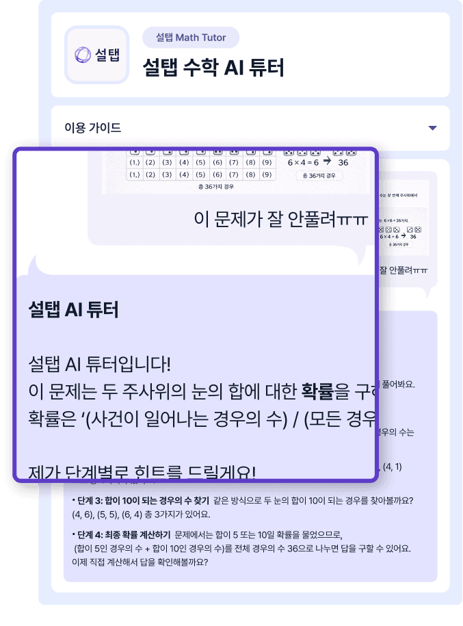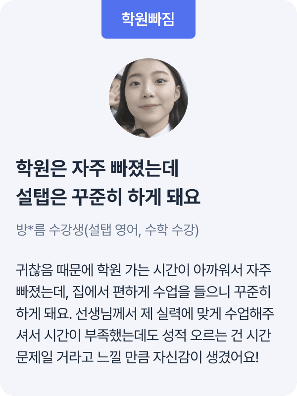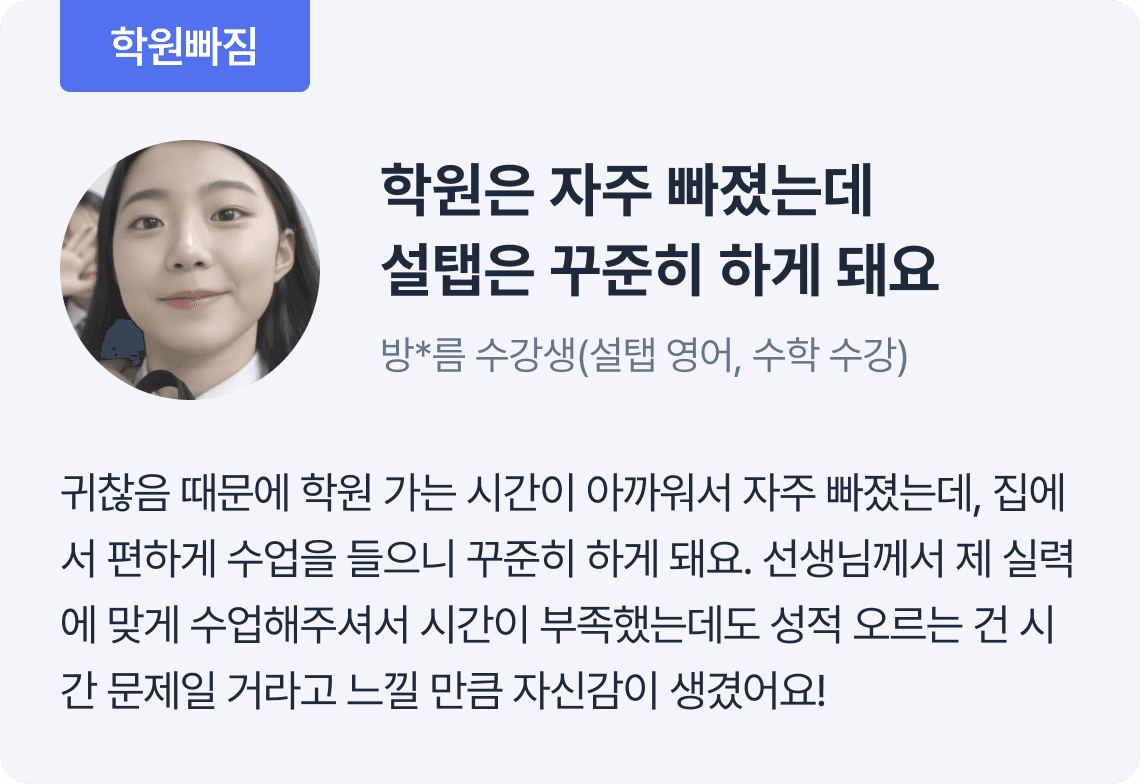 설탭은 학생이 집중하기 좋은 시간/장소에 맞춰 1대1로